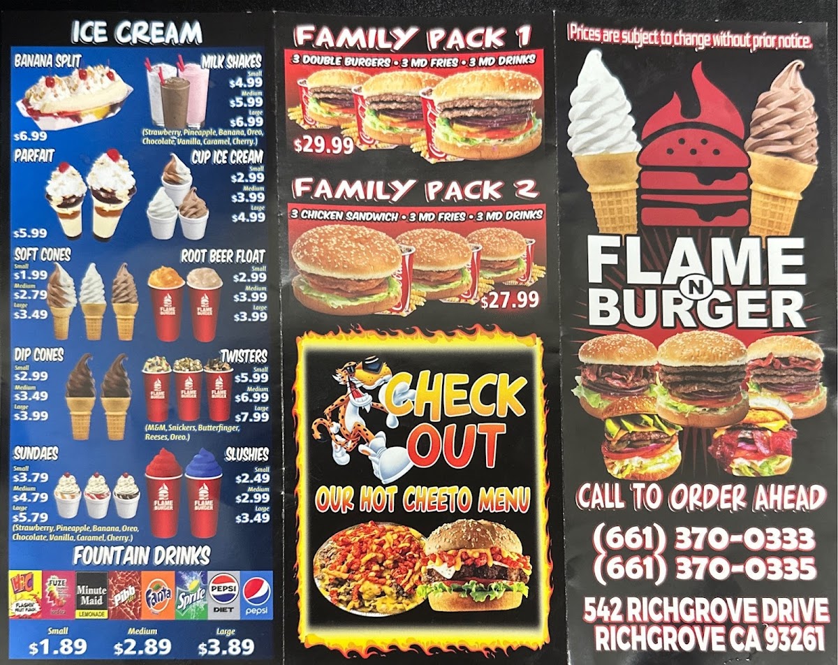 You’ll find the Flame N Burger Menu packed with exactly the kind of comfort food that hits the spot, whether you’re swinging by after work or exploring the neighborhood around 542 Richgrove Dr in Richgrove, CA. The lineup leans into hearty, flame-grilled flavors, and it’s easy to get drawn in as you move from their signature burgers to the crispy sides that round out a laid-back meal.